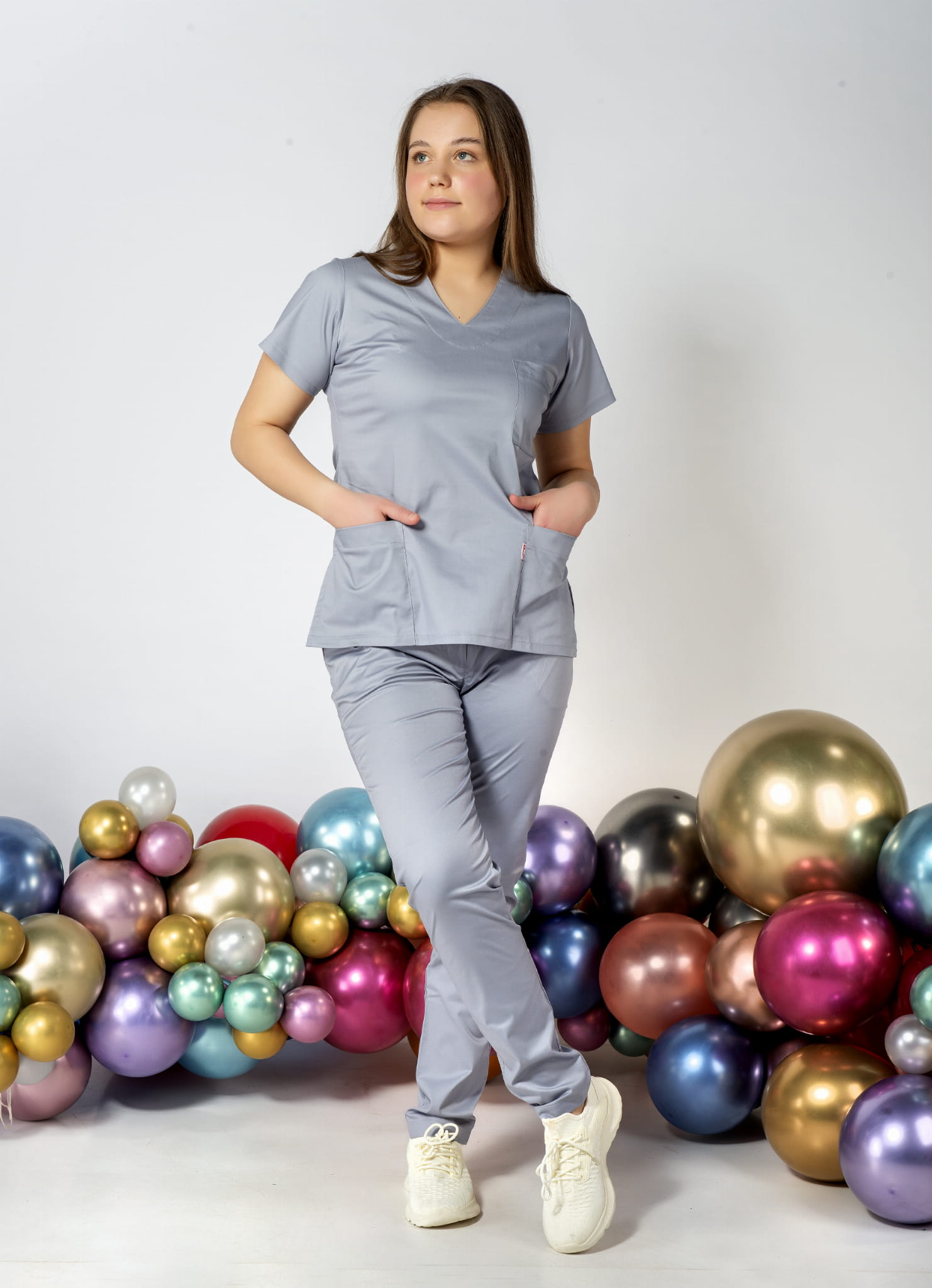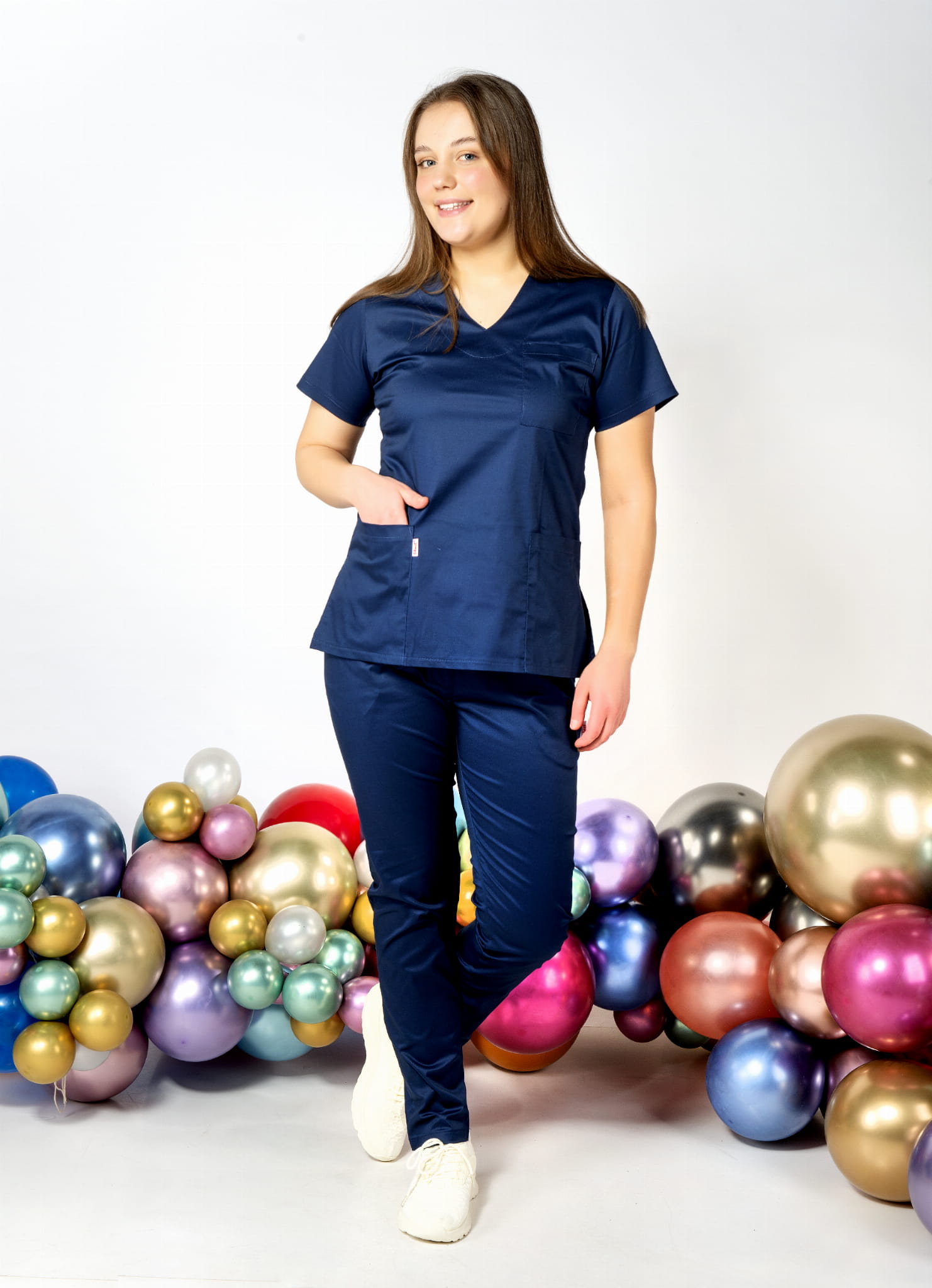 Games Komplet medyczny damski Lena, kobiecy krój, długie spodnie, bluza z krótkim rękawem