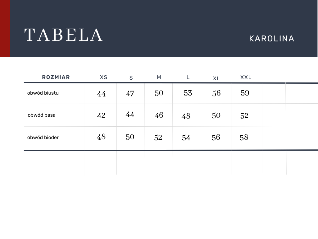 ROZMIAR- Przy wyborze rozmiaru proszę sugerować się tabelą rozmiarów. Jeśli nie ma rozmiaru lub koloru, który Cię interesuje, skontaktuj się z nami - sprawdzimy dla Ciebie dostępność.