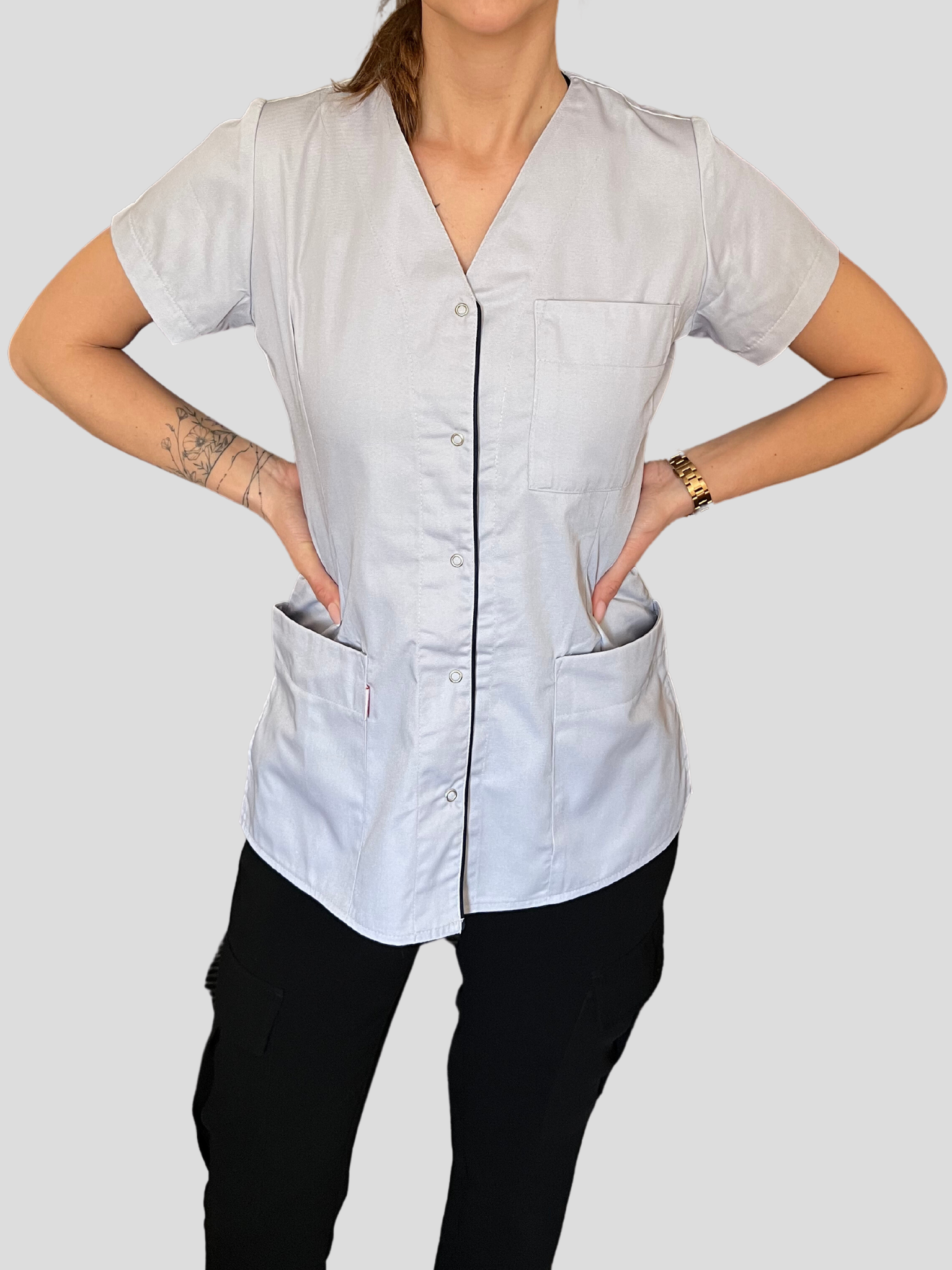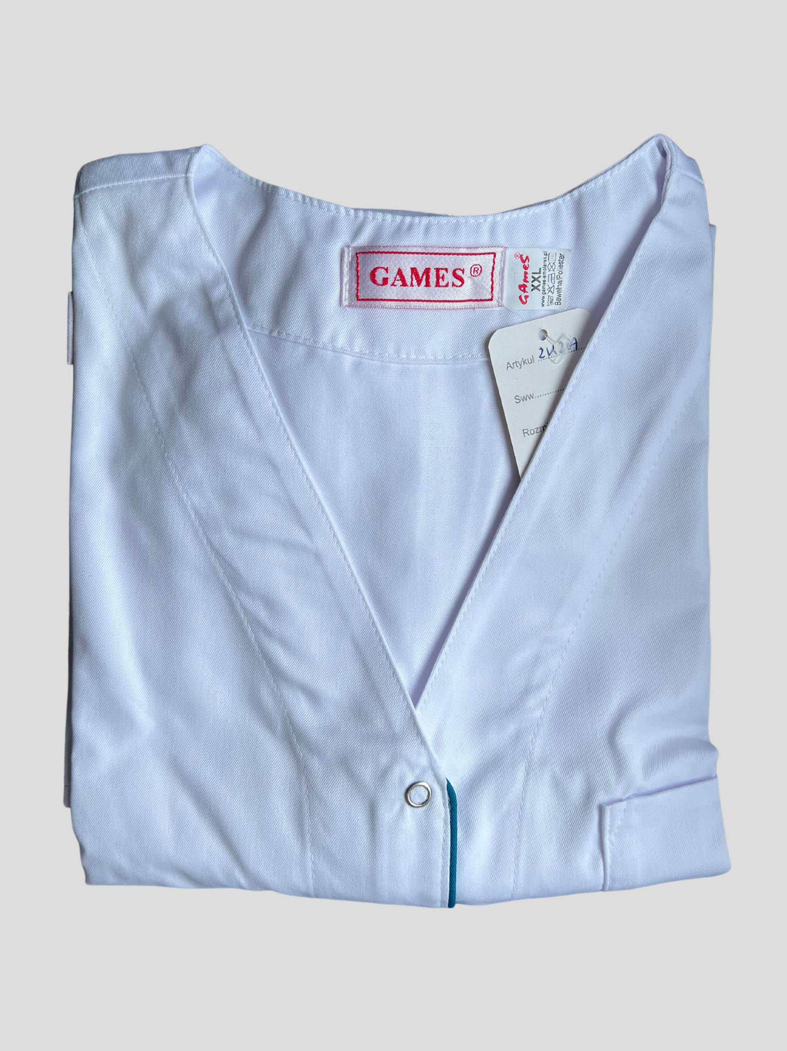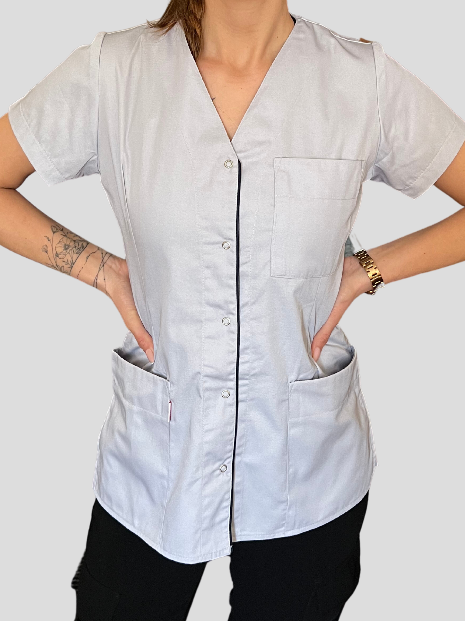 Games damska bluza medyczna Zuzia, zapinana na napy, lamówka, krótki rękaw, promocja