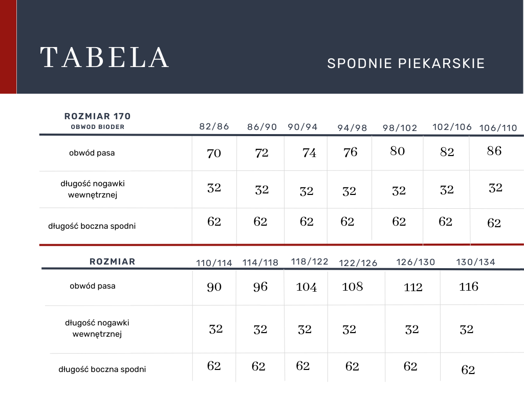 W przypadku dalszych wątpliwości – wyślij nam swoje wymiary, a my dopasujemy rozmiar dla Ciebie.