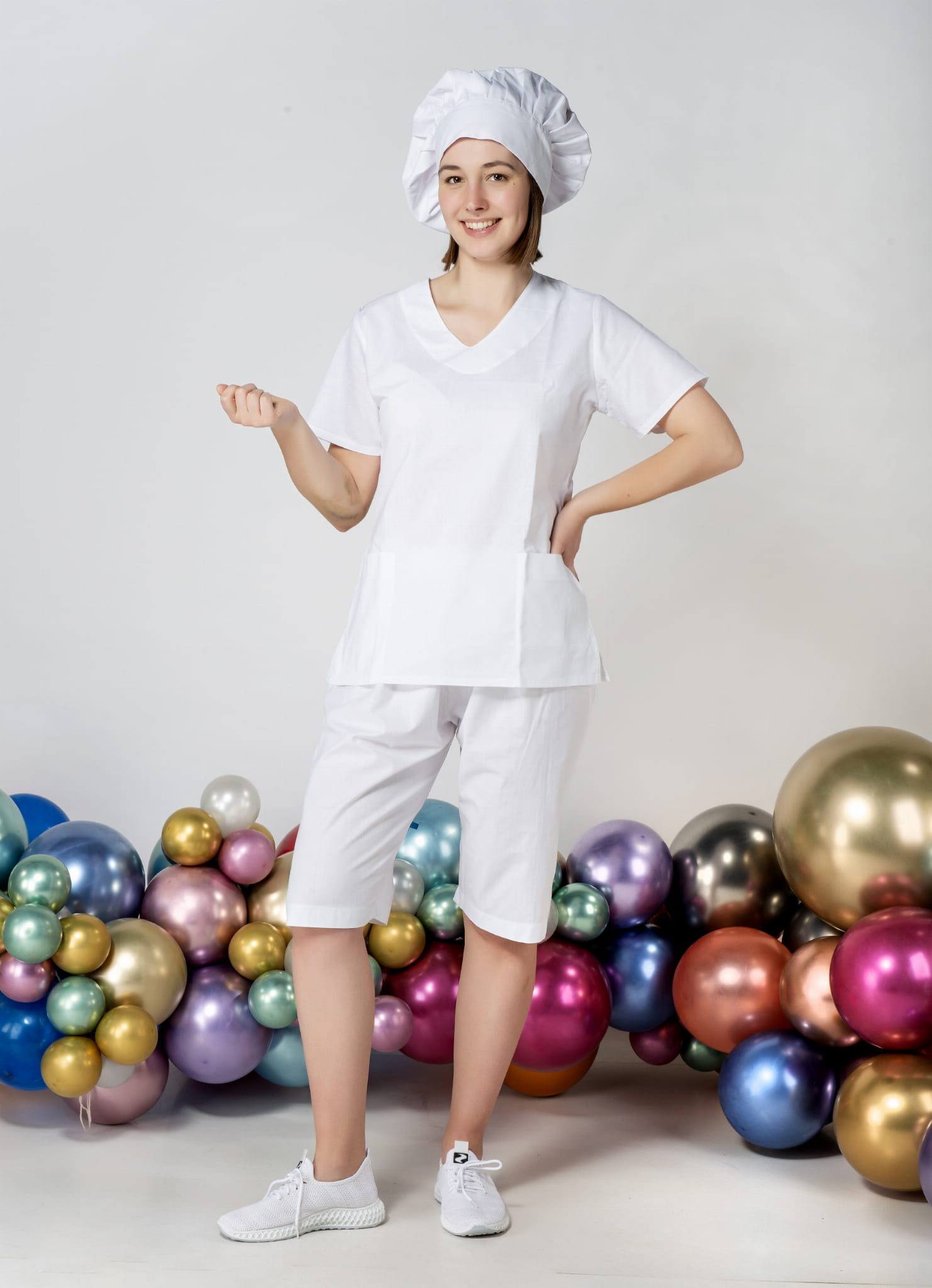 Games damski komplet piekarski, bluza krótki rękaw, spodnie rybaczki, kolor biały