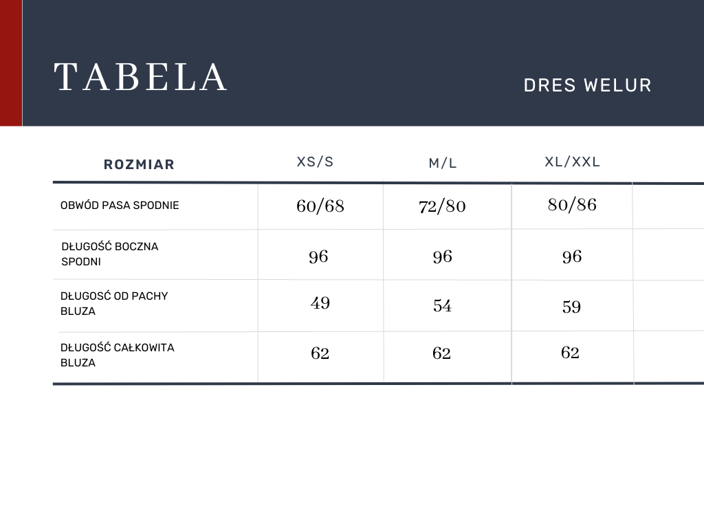 W przypadku dalszych wątpliwości – wyślij nam swoje wymiary, a my dopasujemy rozmiar dla Ciebie.