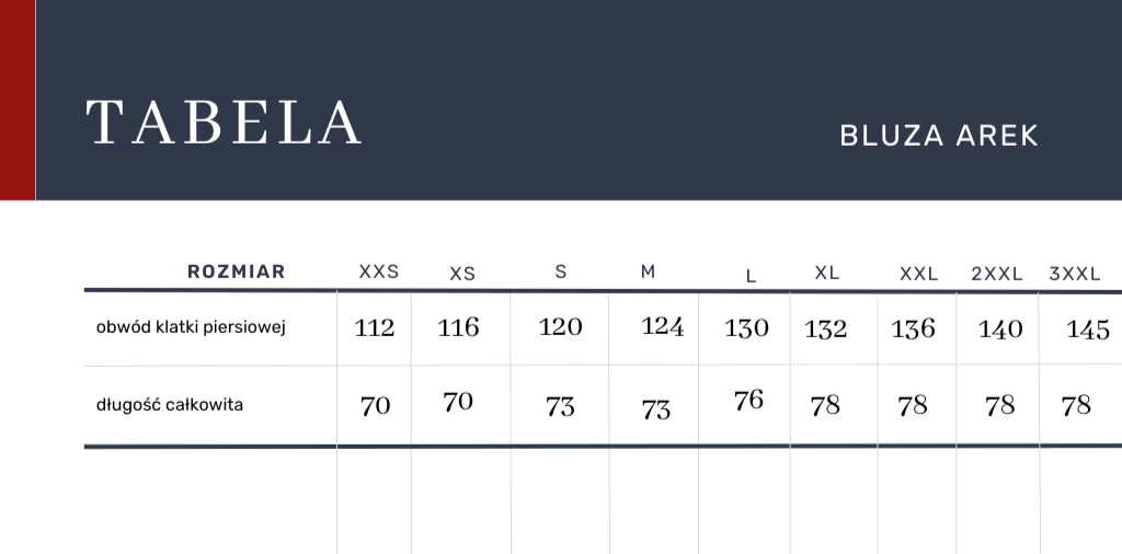 W przypadku dalszych wątpliwości – wyślij nam swoje wymiary, a my dopasujemy rozmiar dla Ciebie.