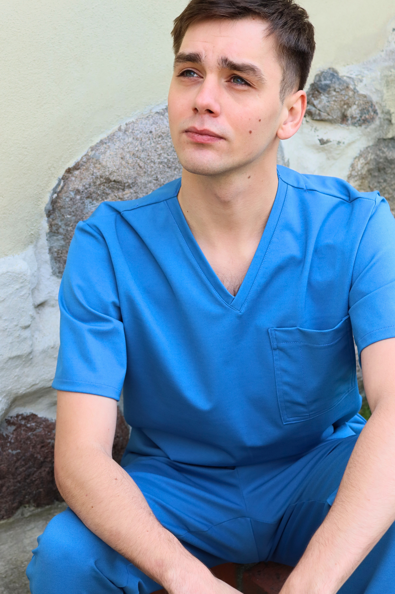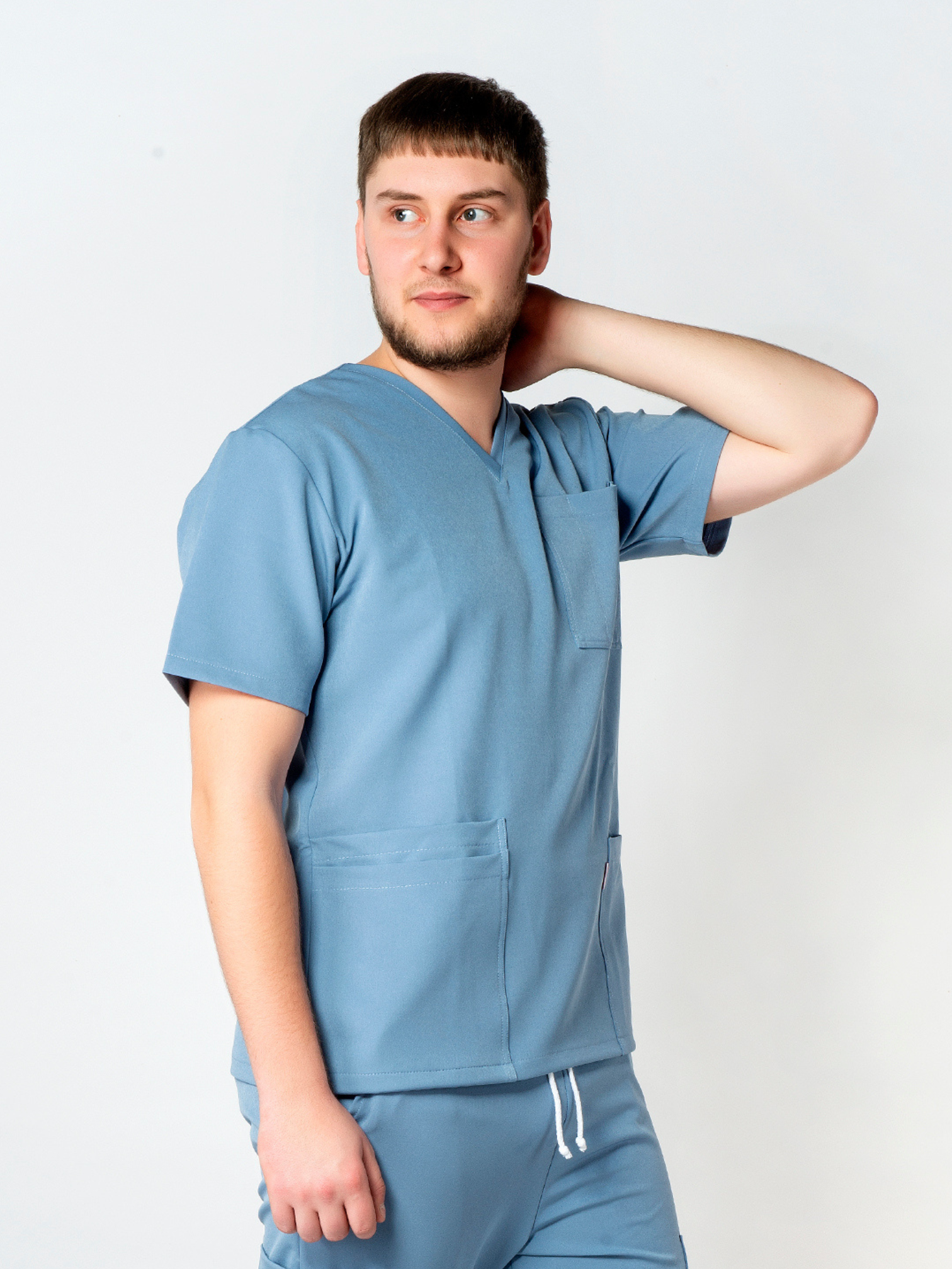 Games męska bluza medyczna Arek, z krótkim rękawem, sportowy styl, wkładana przez głowę